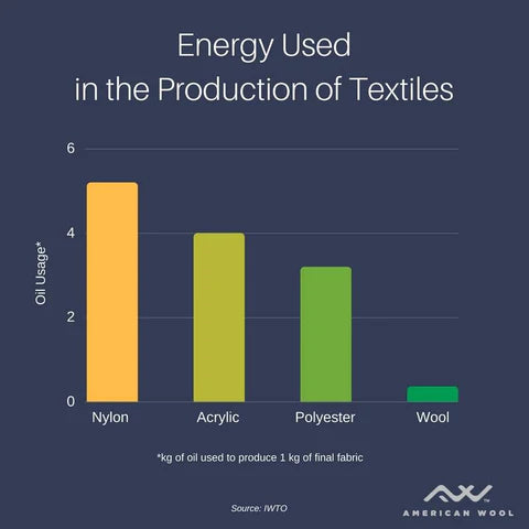 Production of wool also takes far less input of petroleum products than do synthetic fibers, which actually are petroleum products.